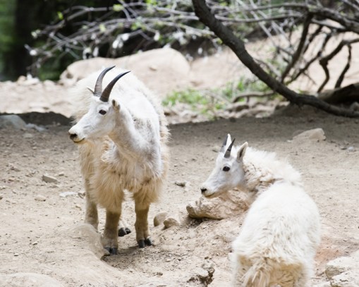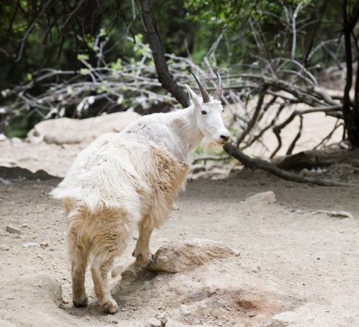 In early summer, when the road up to Harts Pass first is drivable, a person can frequently get lucky and see the local mountain goats at a natural salt lick. It is shortly past the scary section of the road when it goes into the trees and just over the steep edge of the downhill side. Sometimes the goats will be on the road. They seem quite familiar and used to the minimal traffic passing by so a car or truck makes a good blind for observation or photography. I’ve only seen them in this season when they are shedding big chunks of fur and looking mangy. There are young ones and the moms tend to keep them away from the cars. Here are a few that I saw today.