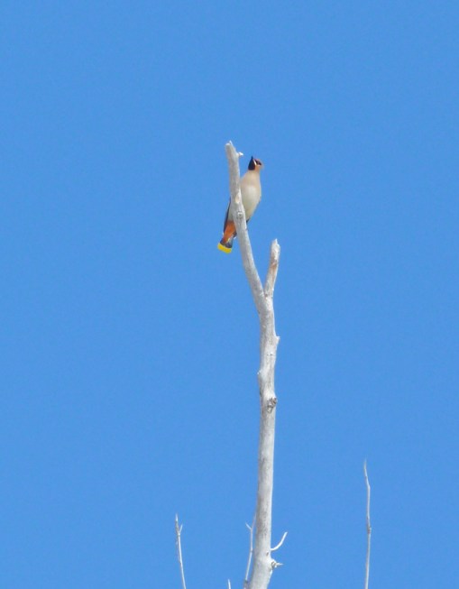 A large flock of Bohemian Waxwings hawked insects over the Methow River