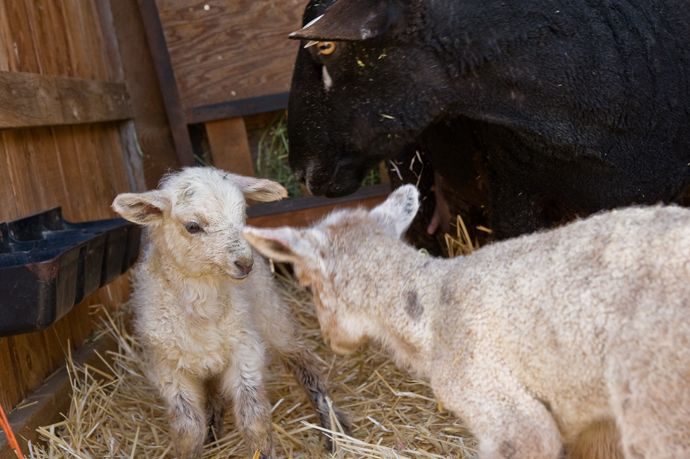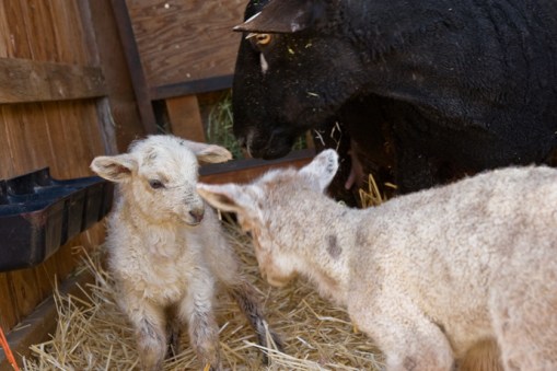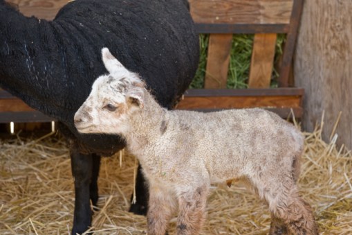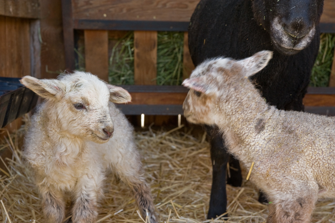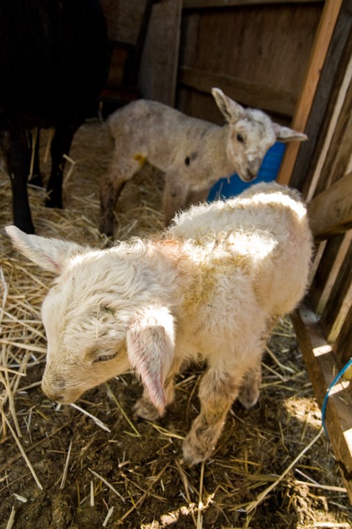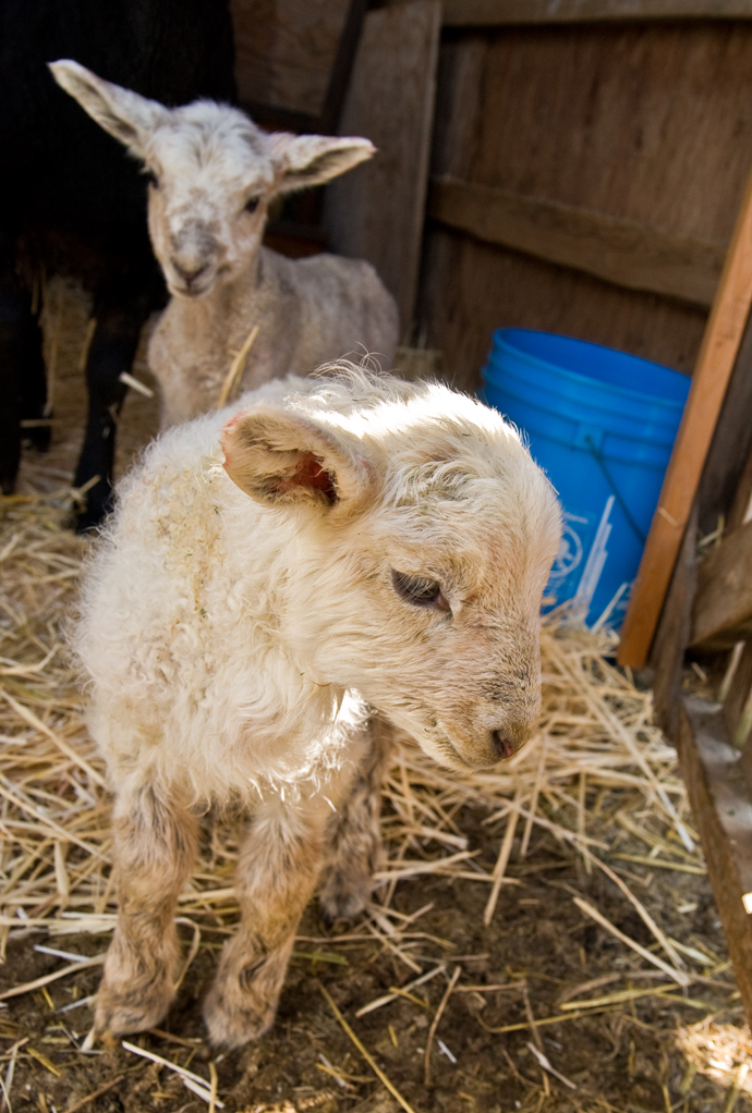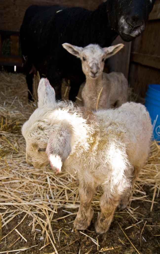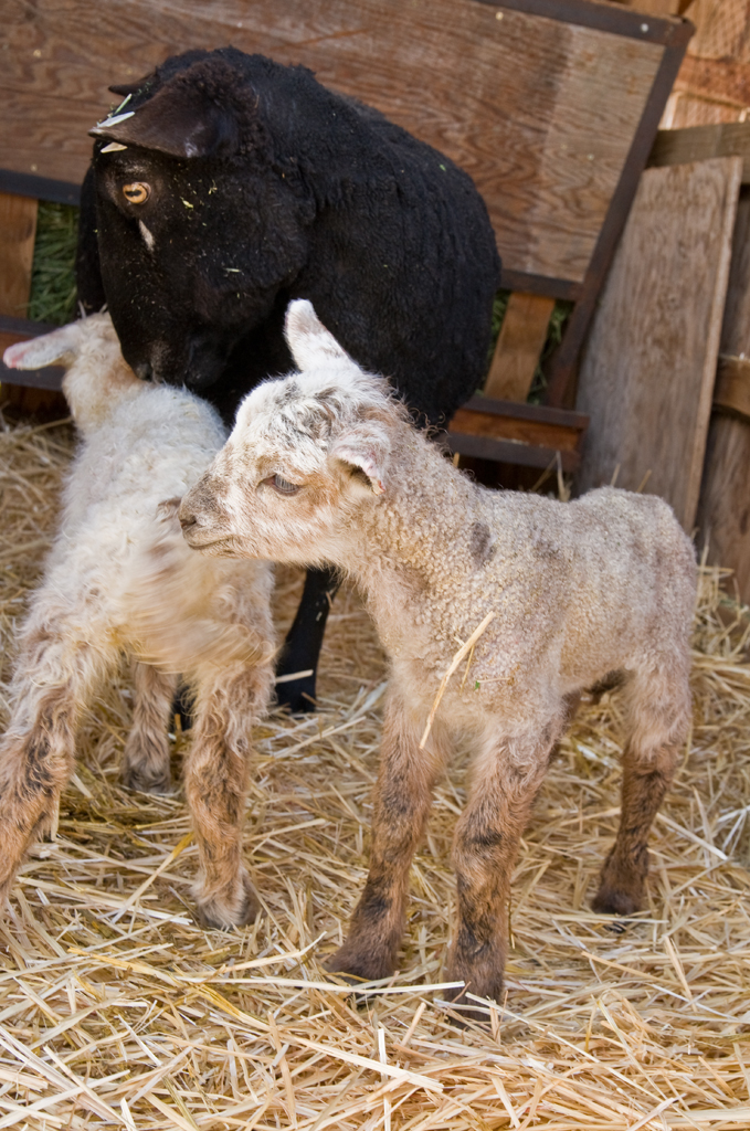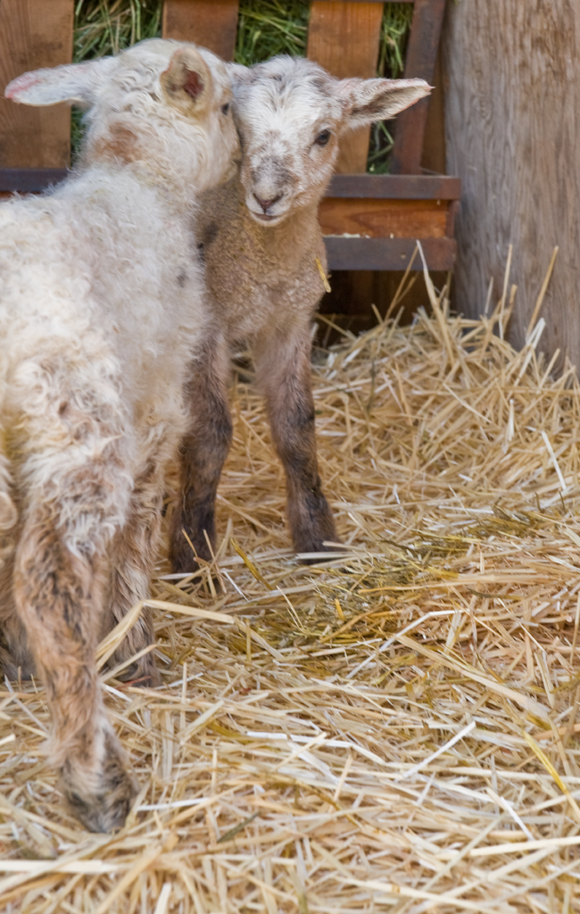 Mary Ann volunteered to help me with my canine agility jumps yesterday and in the morning she sent me an email that said “We have brand new baby lambs!” Oh my gosh, how sweet is that? The twin boys were born yesterday morning just hours before I arrived! And they were already walking around and sniffing things and getting to know each other and their mother. One has longer wavy hair and the other tightly curled hair with brown legs and brown spots. Really, they are just so cute! Who doesn’t love baby animals? And yesterday was a gorgeous bluebird day for a birthday celebration. Mary Ann said by today they will be bouncing around. I can picture them bouncing in today’s first day of Spring snowfall!