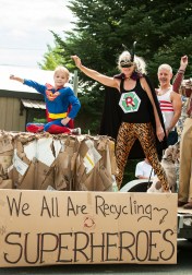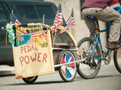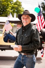 Yesterday Twisp celebrated Independence Day with a homegrown parade. Participants gathered at Twisp Works to prepare for the four block march down Glover Street. There were lots of dogs, bicycles, some horses, Roller Derby Girls, polticians, old cars and firefighters. It was a perfect day for a parade.