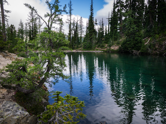 Last year I went to Blue Lake twice in the fall so this year I wanted to make sure and get there during its short summer season. The snow has only recently receded and still covered the trail in one place – maybe an avalanche chute. There were still a couple of small icebergs floating too. And given that the weather up there on Thursday was cool and cloudy, it was very early in the short summer for Blue Lake. Winter is the major force in the North Cascades, lasting from October through July; well that’s when there is snow on the ground.