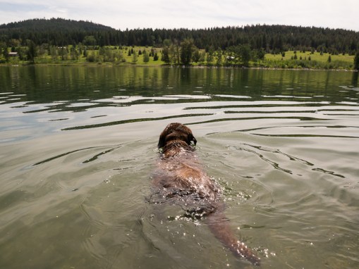 Sam in Sidley Lake. This old dog does better in the water than on land.