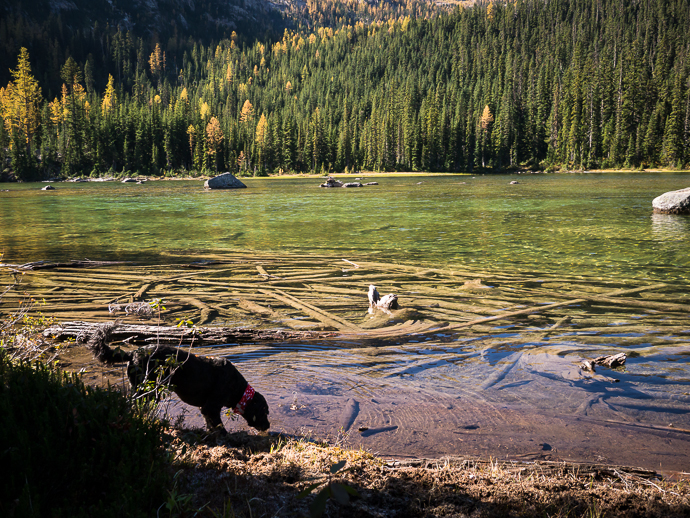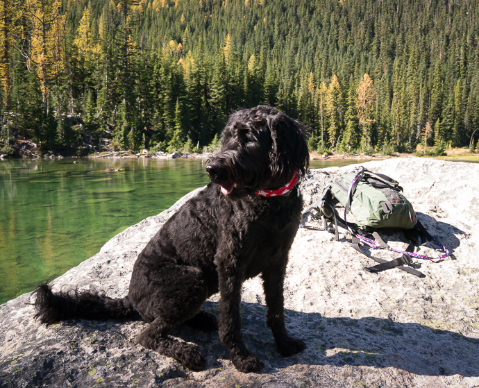 Yesterday was Luna’s sixth birthday! It just doesn’t seem possible that she’s officially middle aged. What does that make me? We celebrated with a hike to Cuthroat Lake – a gem of a lake in the North Cascades. It’s an easily accessible trailhead off of highway 20 and it’s only a two mile saunter to get to the lake. I’ve only been there once before, years ago and in the middle of summer. The mosquitoes chased me away in no time and I never returned til yesterday. Fall is definitely the time to visit Cuthroat Lake. The trail was not overly busy yesterday, surprising for a three day weekend with fine fall weather.