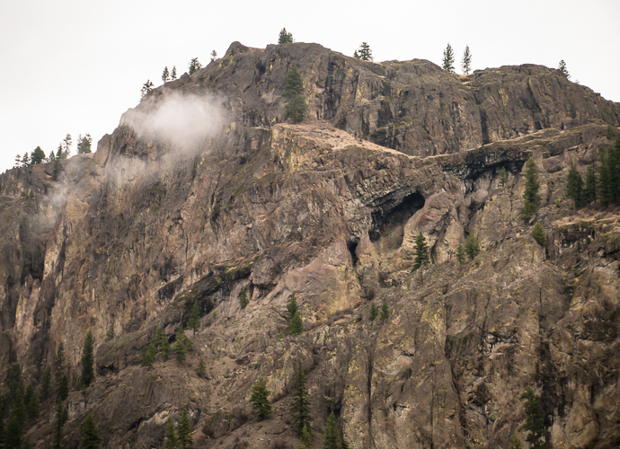The front yard. Peregrine Falcons nest there. Rattlesnakes den in those rocks.