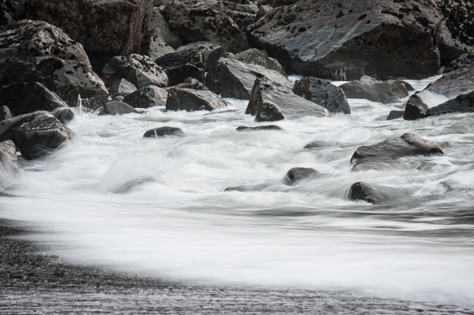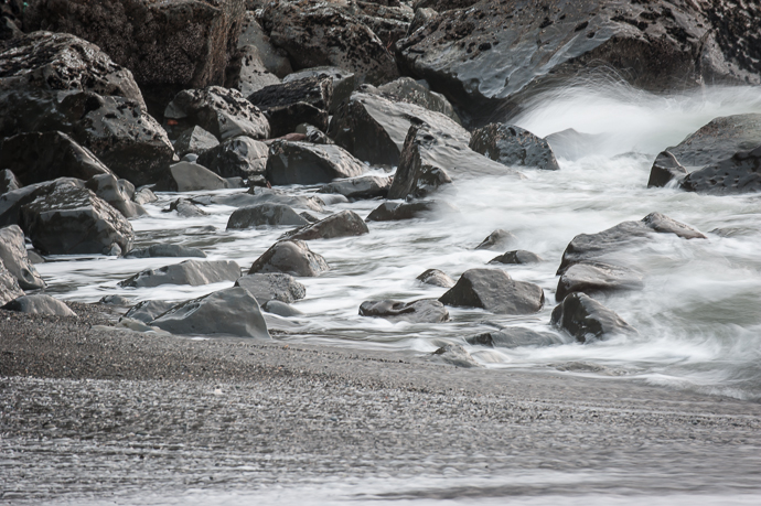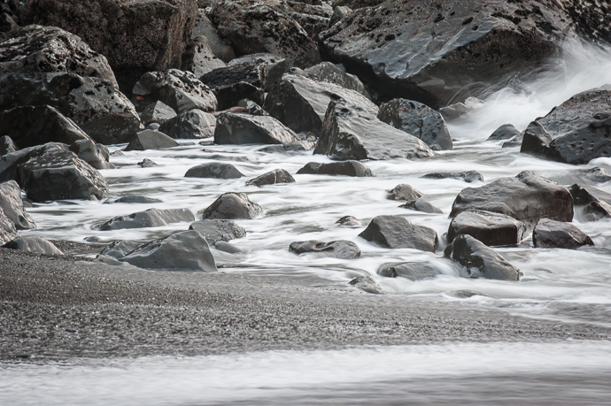 A series of waves washing over rocks