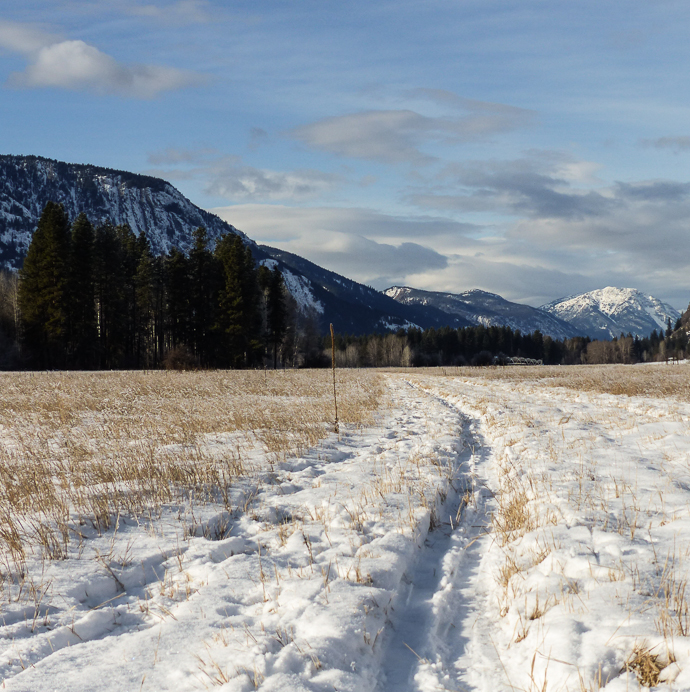 This should be a packed and groomed ski trail with a couple feet of snow and no grass showing through.