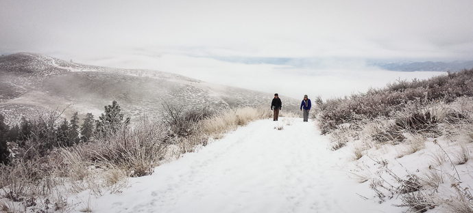 Looking back at the valley filled with fog