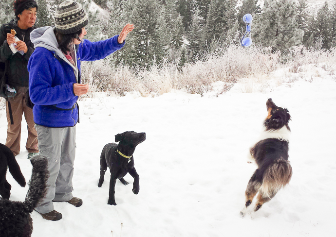 Trip likes to take a toy on his walks and the other dogs know that it is HIS toy, not to be messed with.