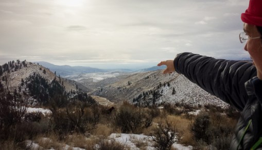 Jennifer pointing out landmarks at the lower end of the canyon