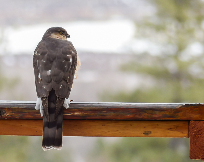 I am pretty sure this is a Sharp-shinned Hawk, probably a female since it seems big.
