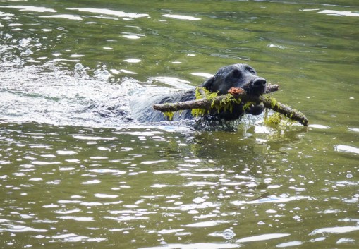 Sky retrieved sticks that the other dogs left behind