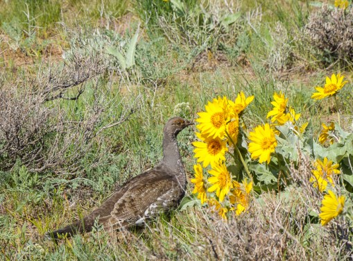 This Dusky Grouse stayed put as all the dogs walked by and then when MA went past it finally could not stand it and had to get up and walk giving me a great look!