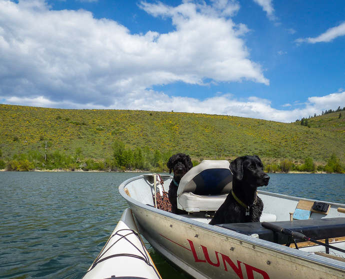 Sky was very interested in the fishing. Luna was along for the ride.