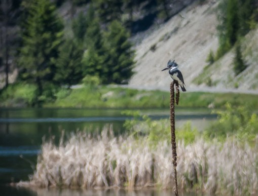 Belted Kingfisher. I was pretty sure it had a nest across the road in a bank but ran out of time to wait for it to emerge again.