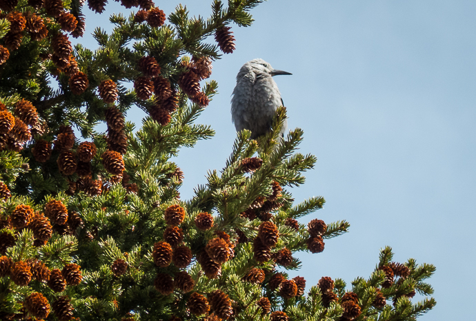 Clark’s Nutcracker. These birds have excellent spatial memory, which enables them to cache up to 33,000 seeds in the fall, and then locate a large percentage of those during the winter. Information from http://www.birdweb.org