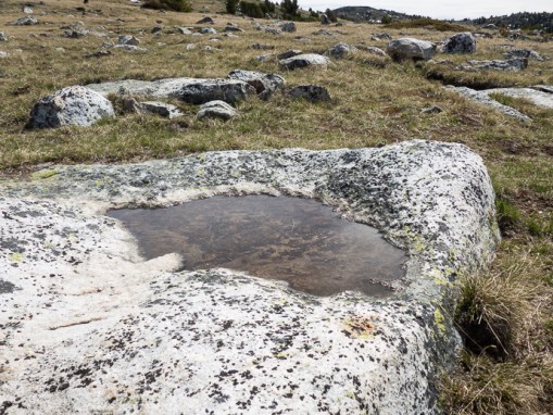A good rock for a break. About halfway up and it has a nice depression that collects water