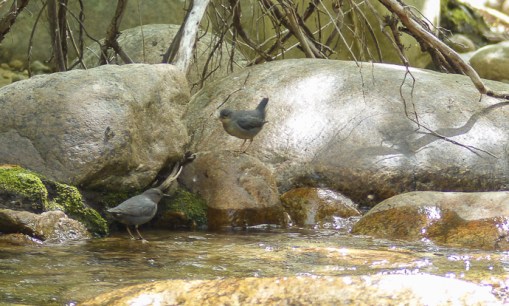 American Dippers, formerly known as Water Ouzels. In the winter we see them on the Methow River; in the summer they nest and raise their young on the smaller tributaries.