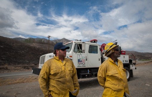 Utah firefighters watch for flare ups near the mouth of the Methow River