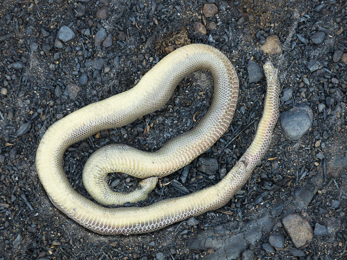 I’ve found several dead rubber boas – a gentle snake that lives underground for the most part