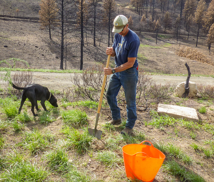 Eric and his co-worker from Methow Natives worked hard to get everything planted, mulched and caged.