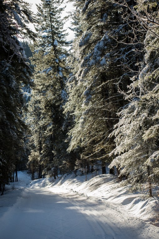 As the sun warmed the snow-covered trees, heavy drops of snow hit the ground. I avoided stopping under any trees and didn’t get that unwelcome feeling of snow down the back of my neck.