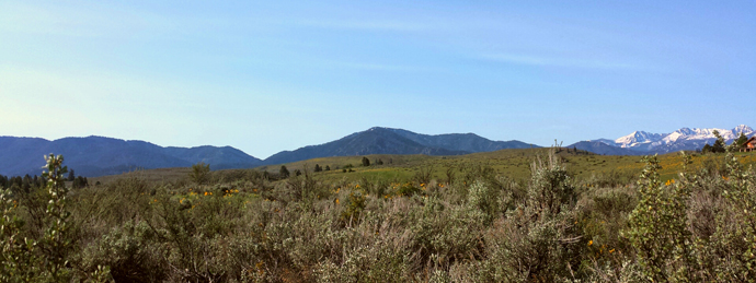 A view of Lookout Mountain from above our house. It is the high point in the middle. The low point to its left is Alder Pass. We walked up the other side.