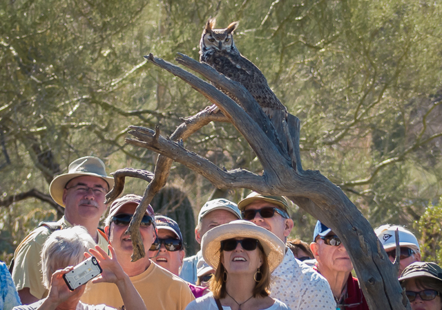 A Great-horned Owl was part of the raptor free flight demonstration.
