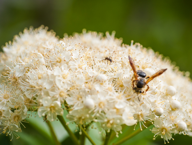 Mountain ash flower with two pollinators