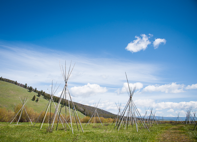 Tipi poles mark the sites of the original tipis where the Indians were camped.