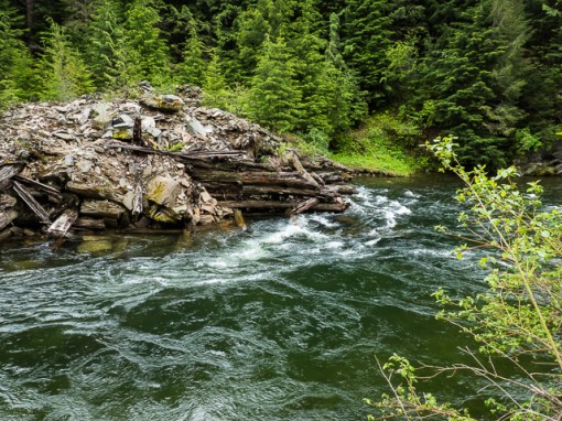 The remains of a splash dam that was used to move the logs downstream from Marble Creek to the St Joe