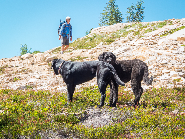 Dogs waiting patiently while a hike heads north on the PCT.