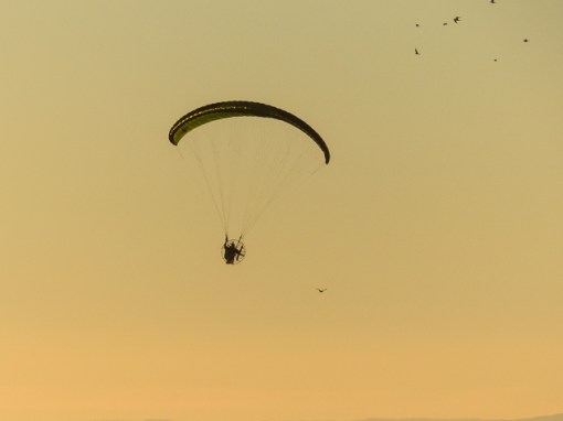 This noisy parachute with a lawnmower engine was quite the disturbance. All the birds flew.