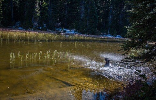 Sky jumped into this ice covered pond near the end of the trail.