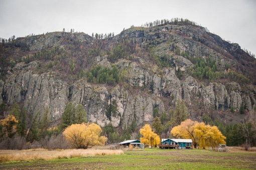 You can see where the fire burned on the cliffs above the house