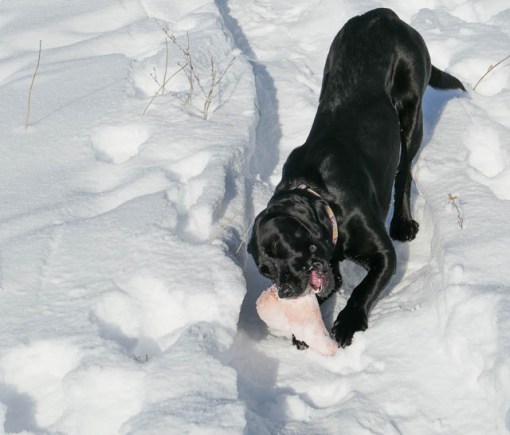 So she not only prefers huge sticks, but huge bones too! Labs!