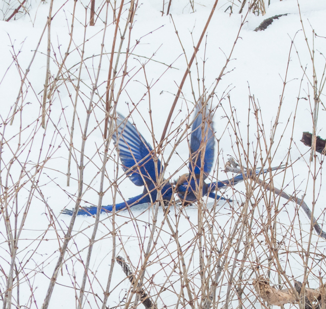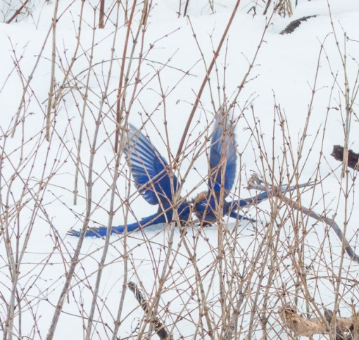 Two male Western Bluebirds duking it out for a pretty female and a nice nest box