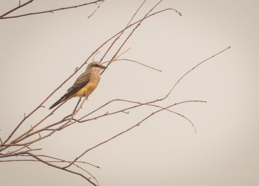 With the strange light from the smoke-filtered sunlight, I can’t decide if this is a Western Kingbird or a Say’s Phoebe although I lean towards the kingbird.