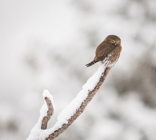 Northern Pygmy-owl strikes terror in the hearts of the finches.