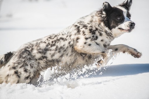 Quincy keeps chasing snowballs he never catches.