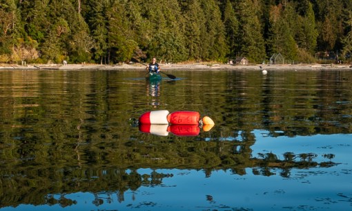 Don paddled his canoe out to watch the process