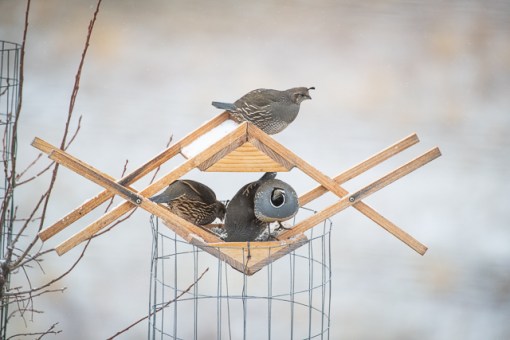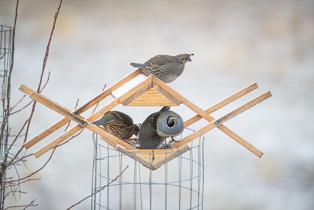 Cool feeder! When I still lived in California I came up to visit my parents in Olympia and got a tour of the state capitol grounds…where I saw California Quail. I was surprised to find them up here.