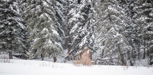 The carcass was down in a draw, out of sight in front of the evergreen trees