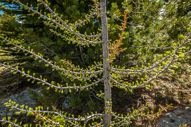 Larches are just leafing out