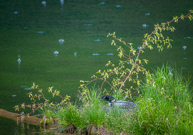 Common Loon nesting in the rain