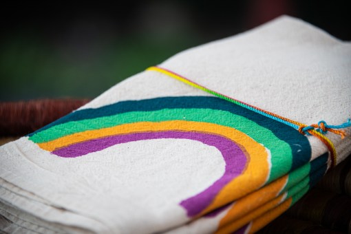 Rainbow napkins from Laura Gunnip’s Fireweed Print Shop at TwispWorks