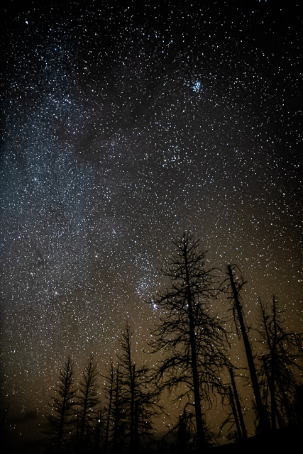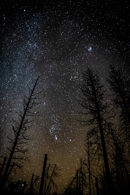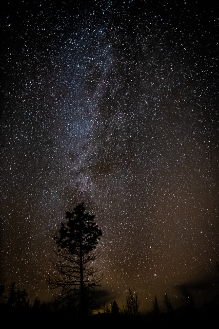 The moon had already set. The stars were uncountable. The night was dark. I ventured down the driveway and up the road a bit. I heard sounds of animals moving in the brush and hoped that none of them were cougars or angry deer. For the most part it was quiet except for the occasional vehicle on the highway down below. I saw a few shooting stars but none crossed my images.