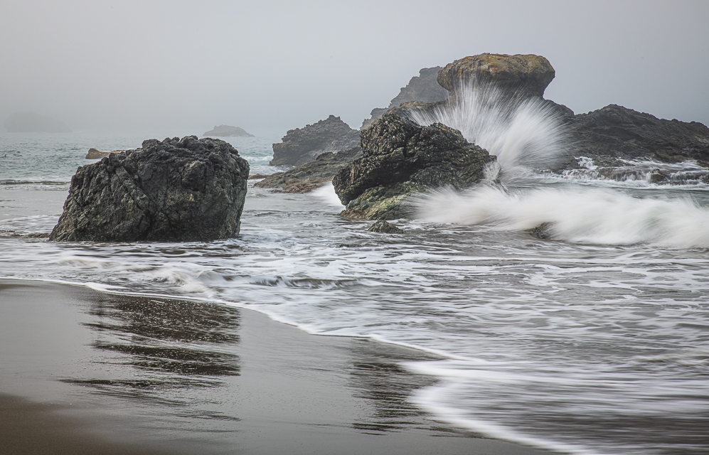 In Oregon again. I thought another misty morning would be good for photographing the water but then, to my surprise, the sun came out.