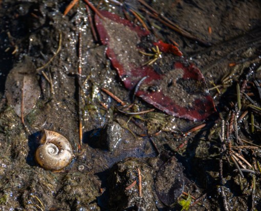 The lake is lower than usual and the muck was quite stinky and full of snail shells