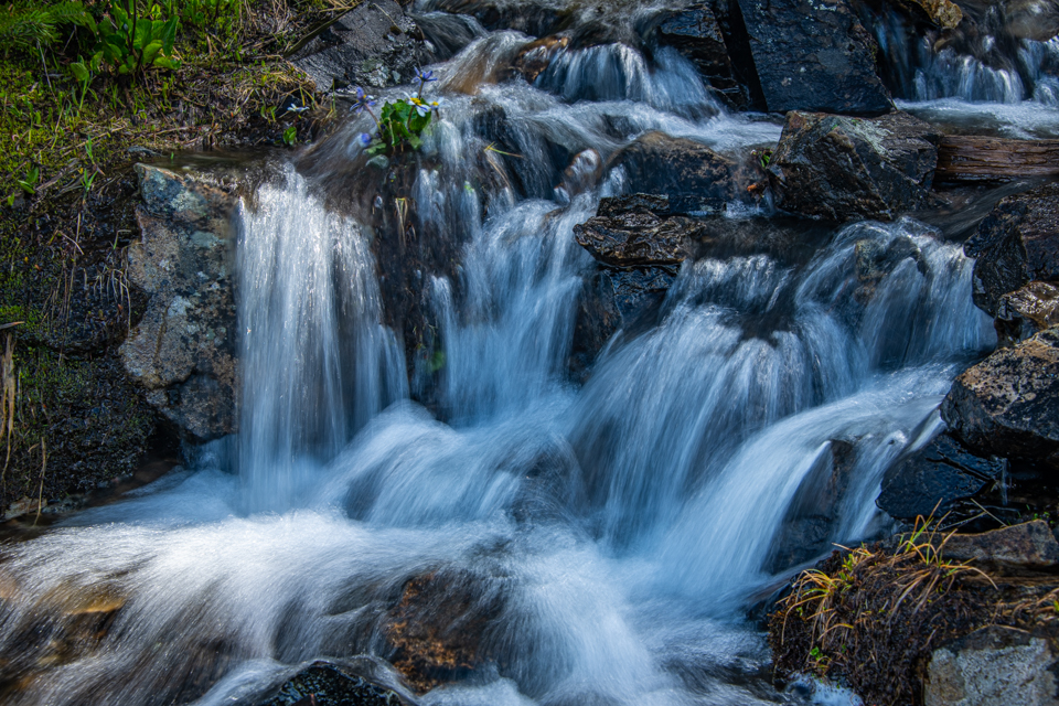 The views were terrific. The flowers were lovely. Birds were singing and calling. I heard a Sooty Grouse doing his display hoots but could never track him down. Olive-sided Flycatchers sang their ‘quick three beers!’ song over and over! Mountain Bluebirds made soft chirps. Ground squirrels whistled. And I found a geo cache. Not on purpose. The cylinder was not well covered and the bright color caught my eye underneath two oddly stacked rocks.