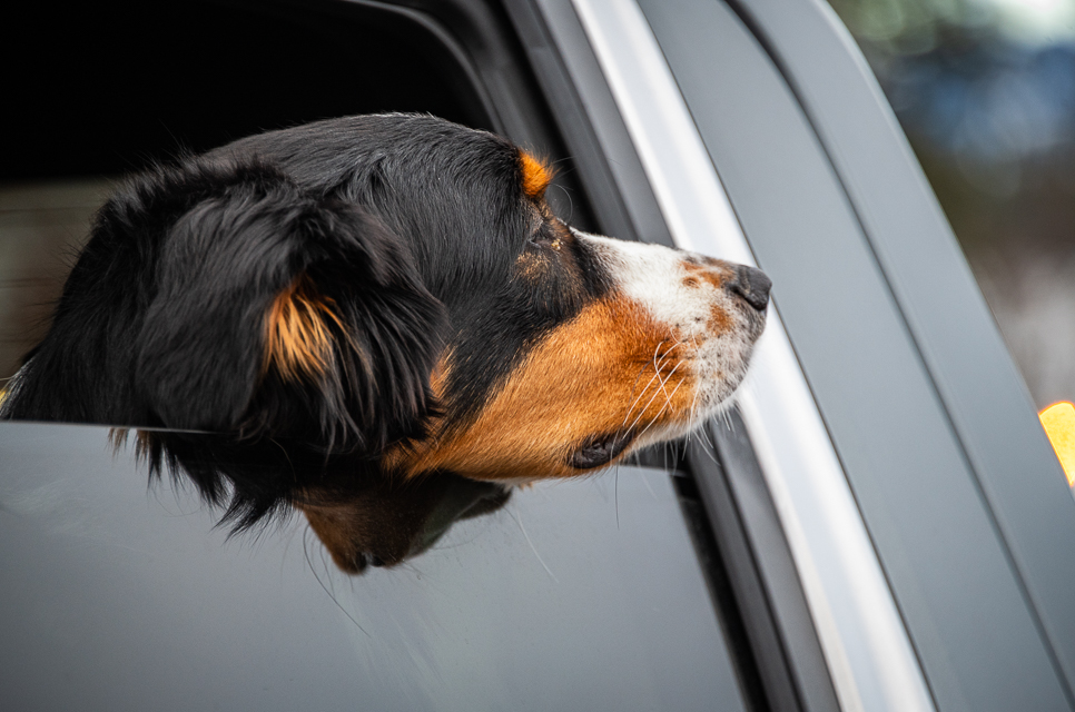 No. I think it could be an English shepherd or a border collie or an aussie mix. I have a photo of it out of the car.